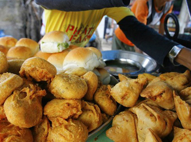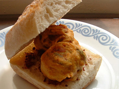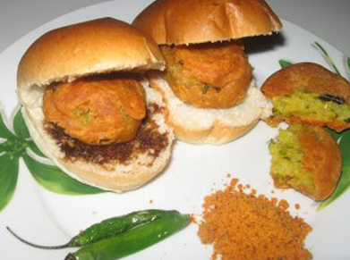 You boil potato, mash it up roughly, make balls, dip them into besan batter, deep fry, get out your fried chillis and chilli-garlic chutney, or green chutney, or both, cut into a pao, shove the ball inside, sprinkle red, slather green, and voila, you’re ready to go. If this is your first, make sure there’s a toilet close by because those chillis can be killers! Mumbai’s most delicious, egalitarian snack. We’re lovin’ it!